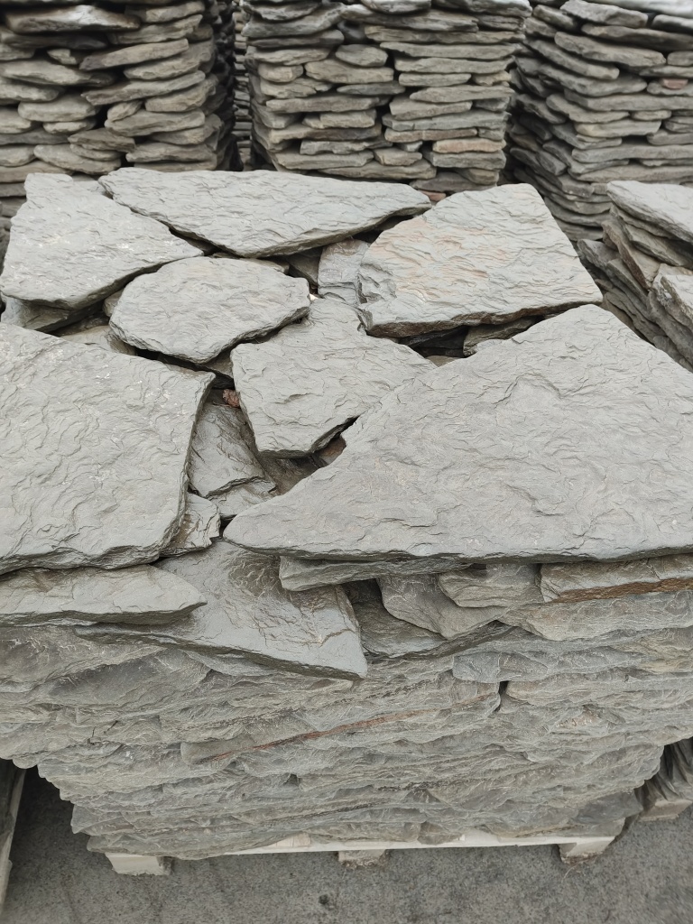 Плитняк песчаник дракон серо-зелёный галтованный для мощения дорожек 40-50 мм